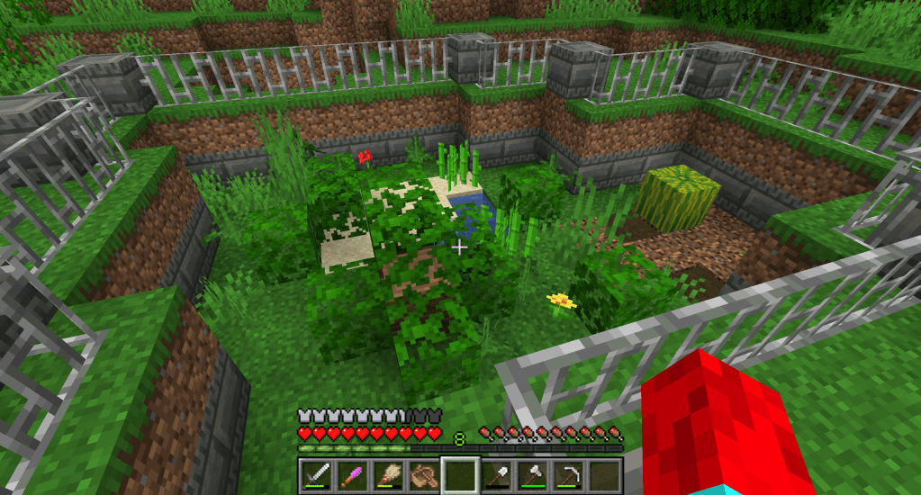 The Bundle of Plants can be crafted using string and any kind of overworld plant material. Dropping the Bundle of Plants onto any Herbivore Dinosaur will cause it to age up faster and gain a short effect of regeneration.